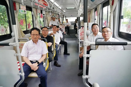朱學軍一行首先來到大新路公交樞紐站,聽取嘉通集團關于市區公交場站規劃布局、城鄉公交三次改革、大新路公交樞紐站暖心驛站建設等情況的匯報;隨后,調研組乘上101路公交車,體驗紅色旅游公交線路,了解城鄉公交一體化改革成果,親身感受嘉興城鄉一體化發展帶來的便利。朱學軍充分肯定嘉通集團在公交民生服務方面的舉措和成效,要求繼續優化設施、提升服務,更好滿足群眾的公共交通出行需求。